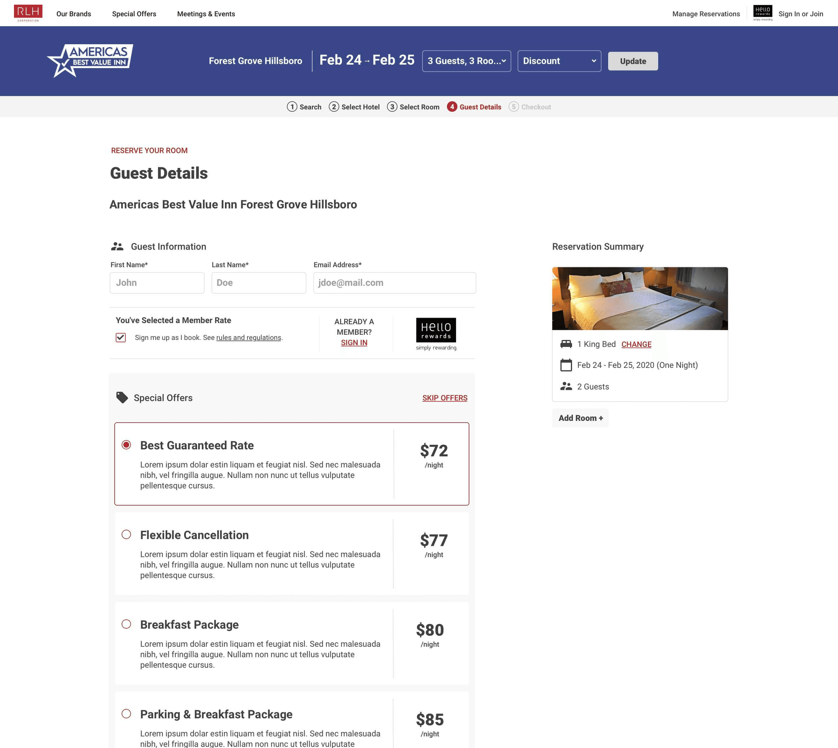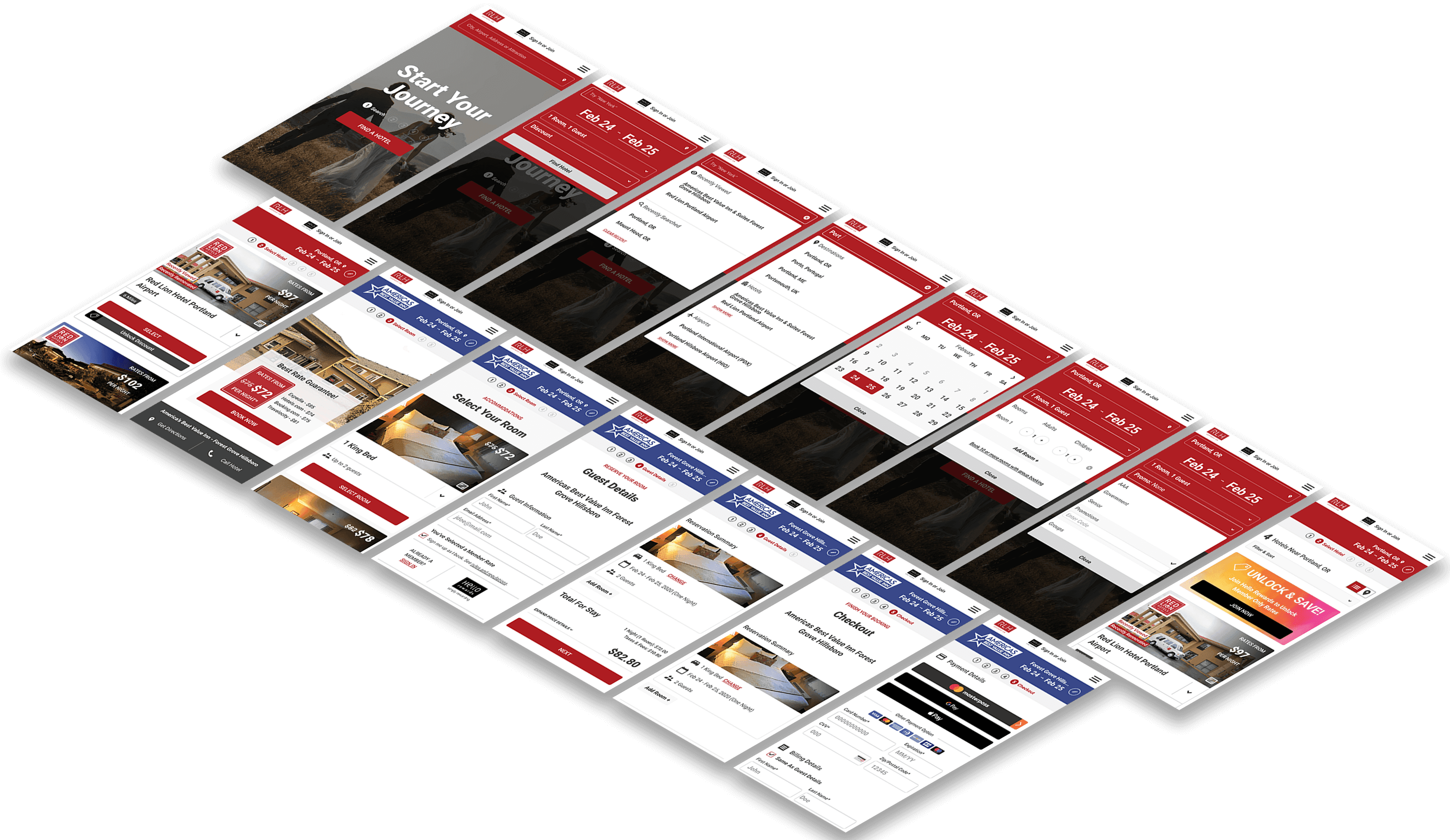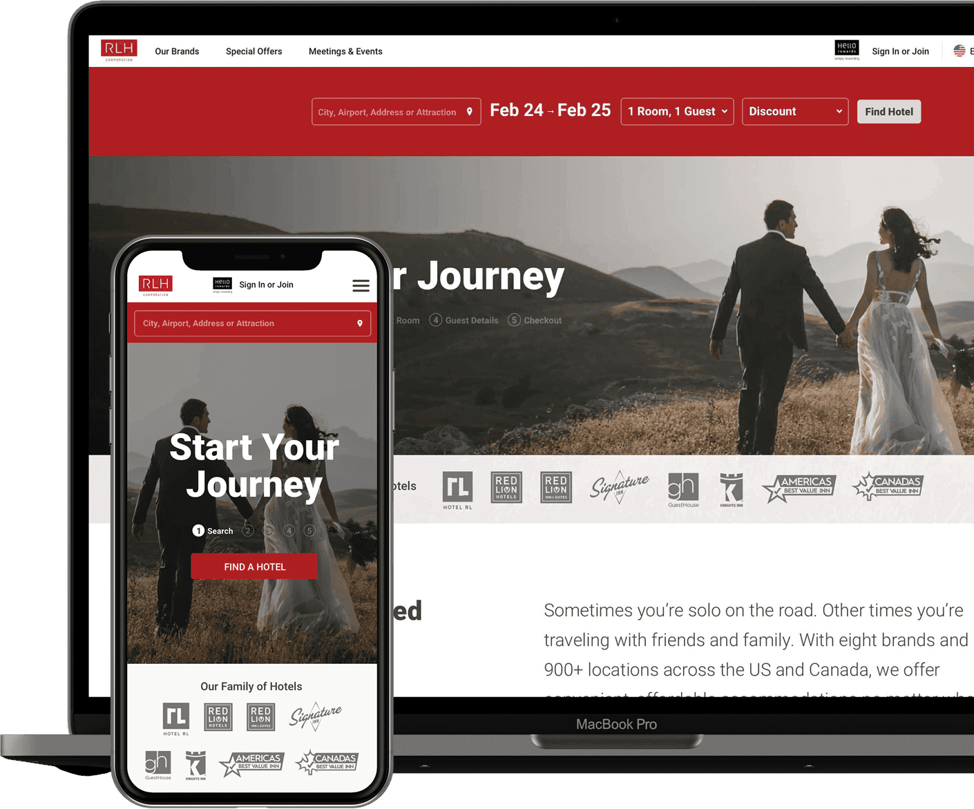 Research showed that users were confused by Red Lion’s corporate-first presentation which lead to session drops and conversion loss. To address this, we reworked the booking bar to reflect child-brand identity.