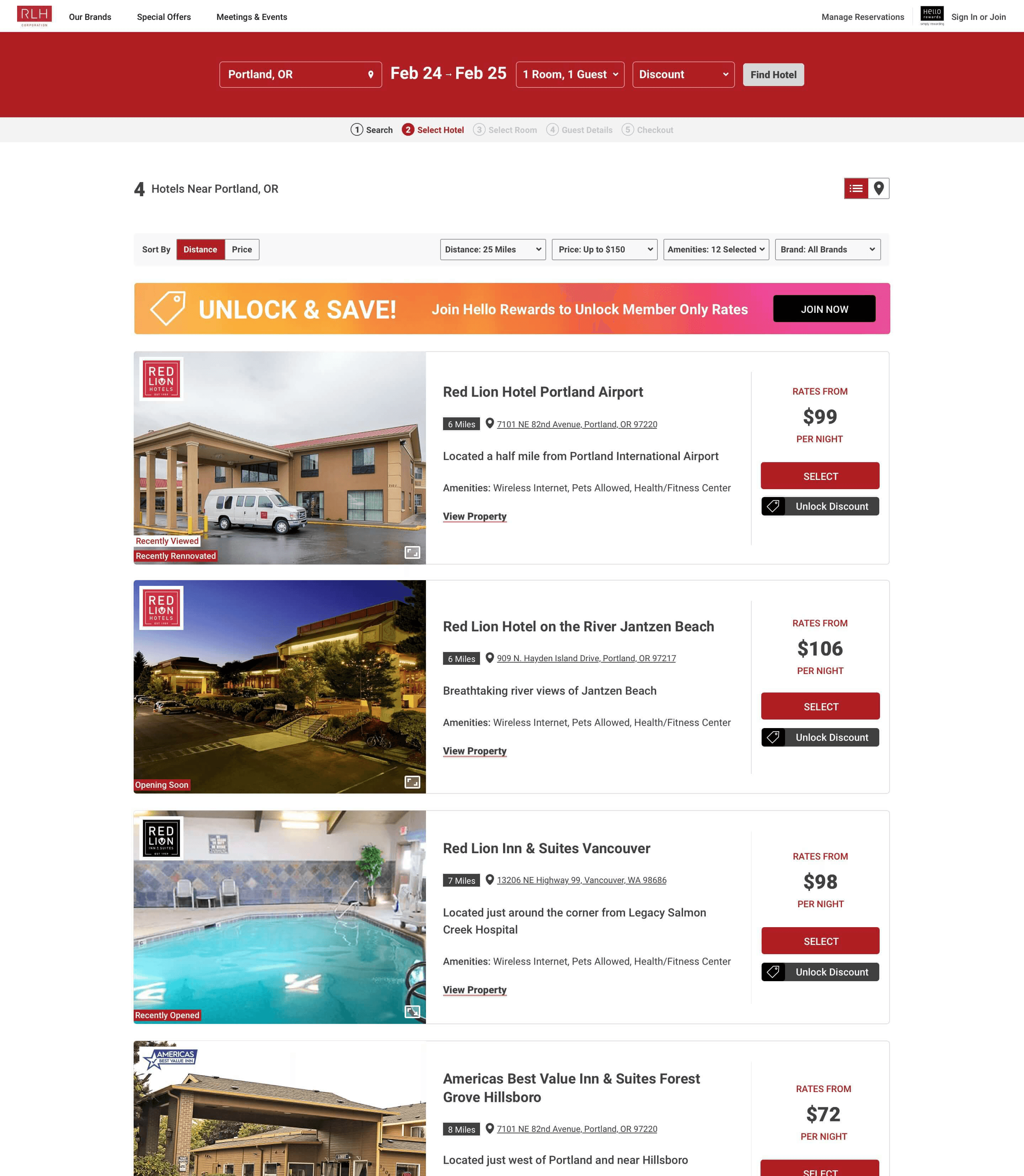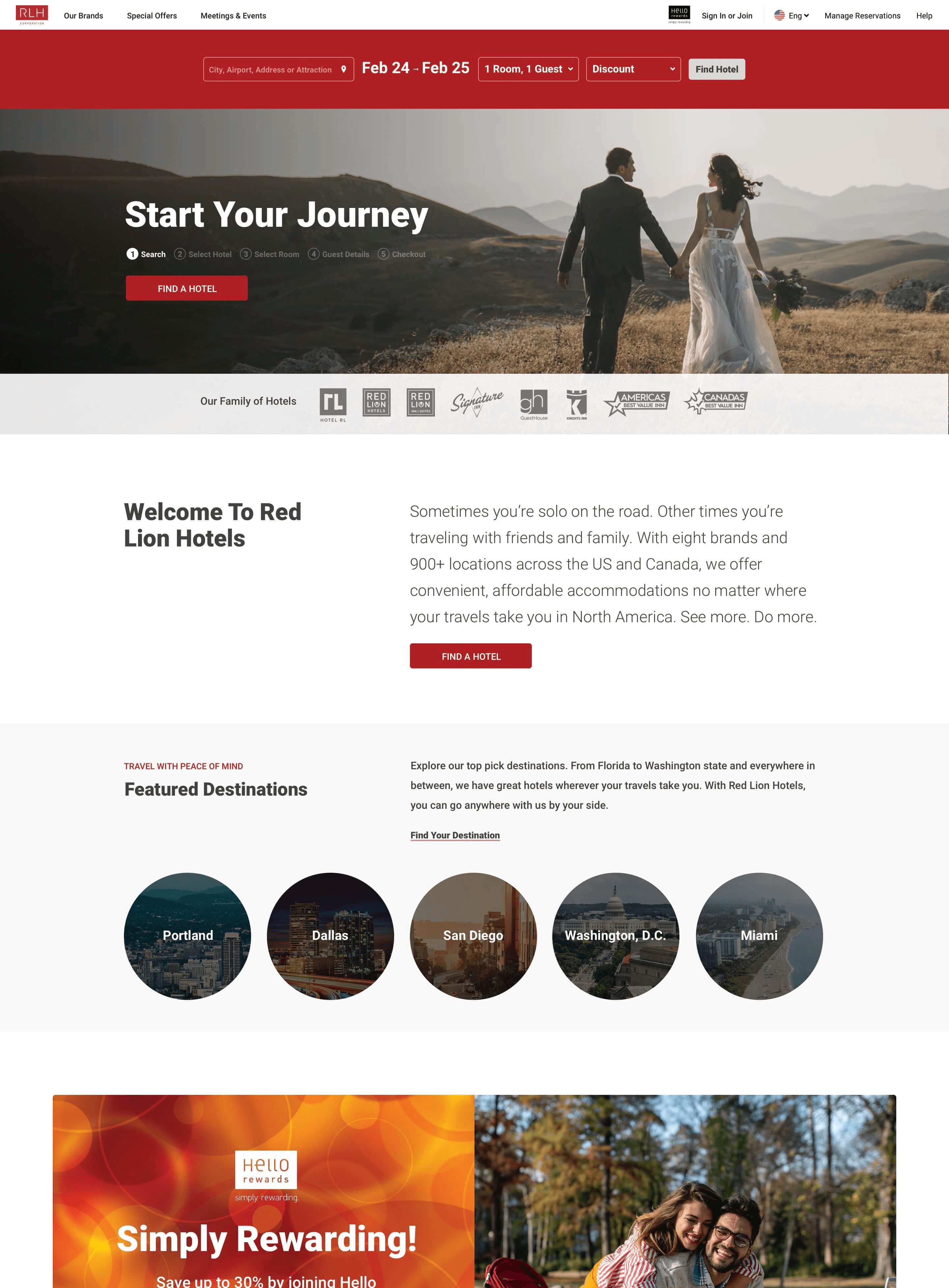 Red Lion Hotels is large-scale hotel brand and booking platform of affordable hotel chains found across the United States and Canada.